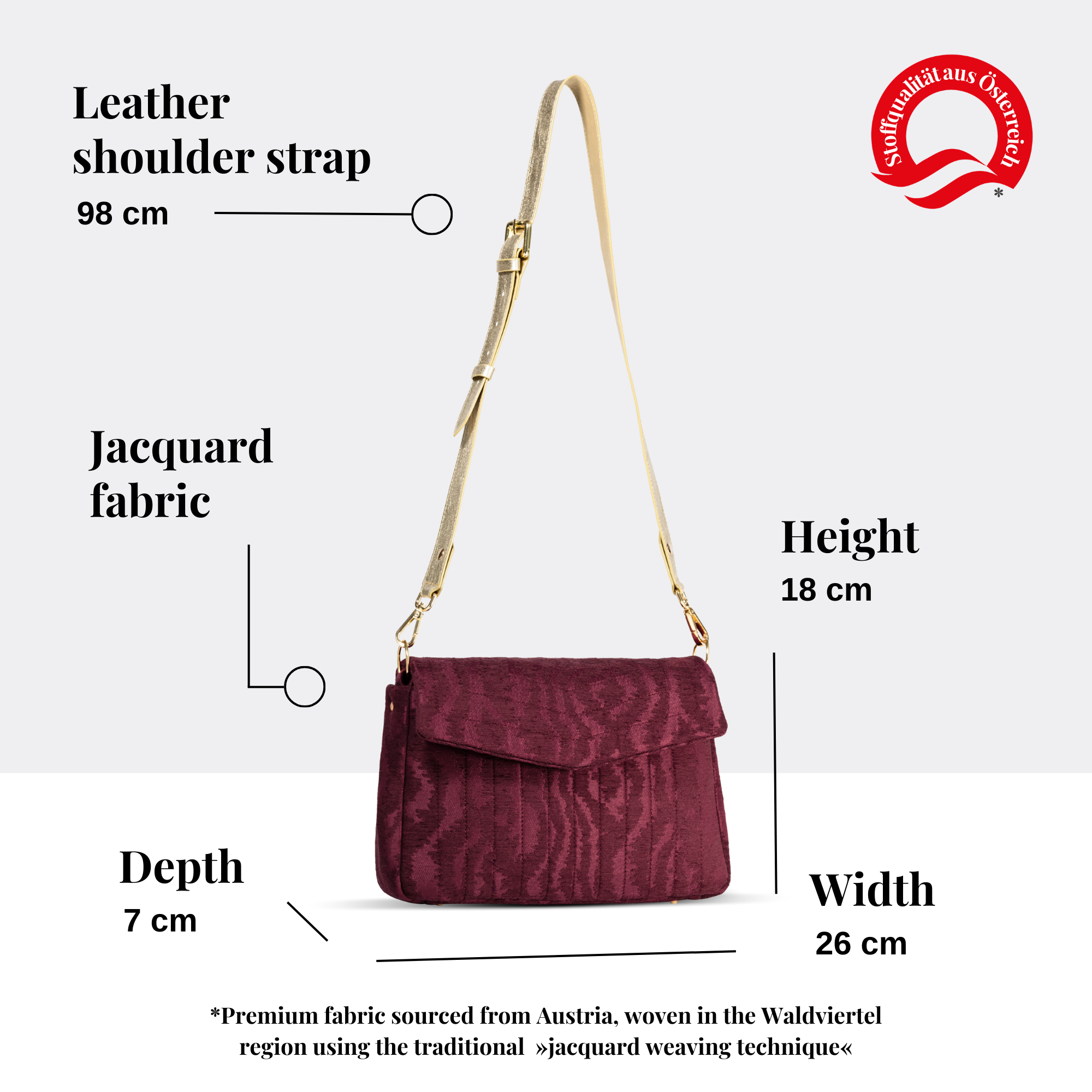 - Premium fabric sourced from Austria, woven in the Waldviertel region using the traditional jacquard weaving technique